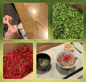 唐辛子選別作業を行いました。枝から外し、赤とグリーンに分けました🌶️鮮やかな色合いです😊
