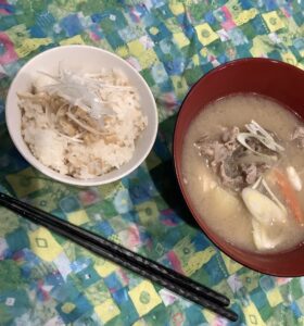 #就労支援B型 ANGELです😊皆さん雪道転倒されていませんか?お昼ご飯は豚汁ときつねご飯でした🦊🎶生姜が入っているので身体がぽかぽかです✨午後からも頑張ります❗️