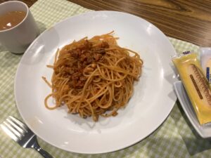 #就労支援B型 ANGELです😊急に温かくなってびっくりです☀️お昼ご飯はボロネーゼとスープでした☺️今日はクッキーもありました✨美味しいご飯を食べて午後からも頑張ります💪✨
