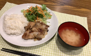 本日のランチは鶏もも肉のごまマヨチキン、サラダにお味噌汁でした✨