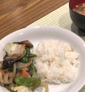 本日のランチは豚肉と野菜の味噌炒めとお味噌汁でした🥢